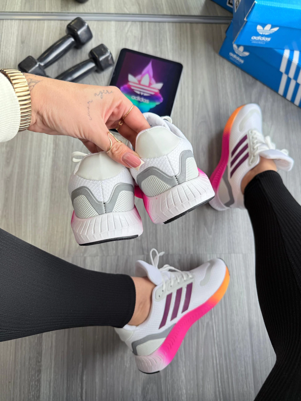 Seu design moderno e as cores branco com rosa conferem um toque de estilo único, combinando com qualquer look esportivo ou casual. Sinta seus pés leves e protegidos, aproveitando a respirabilidade e o ajuste perfeito para longas horas de uso.